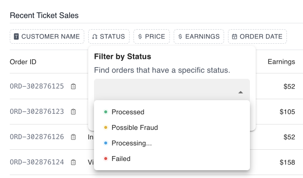 - ๐ Custom Filters - a commonly implemented filtering pattern with great TypeScript support, as well as threshold based filters (